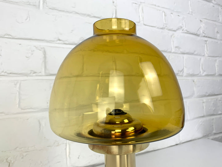 Design by Hans-Agne Jakobsson. Model L102/32 manufactured by his company Markaryd in Sweden. The Candle Lantern comes with a dark yellow/ochre mouth-blown glass shade.