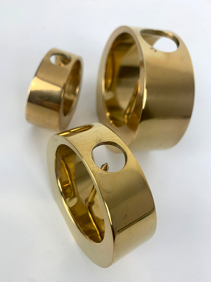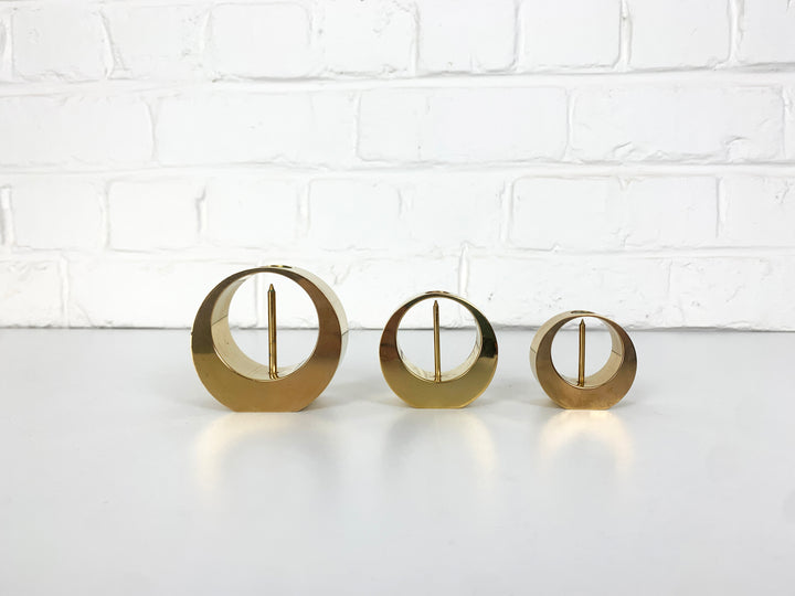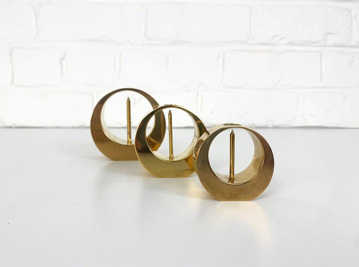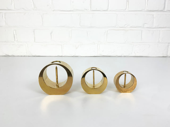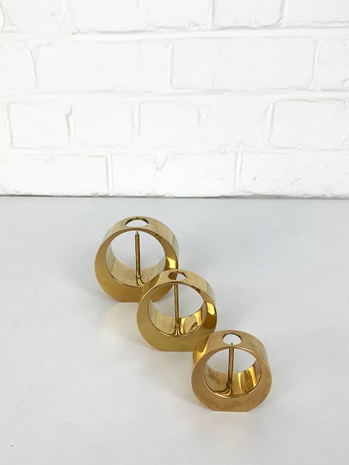 A set of three Mid-Century candle-sticks or candle-holders in solid brass.