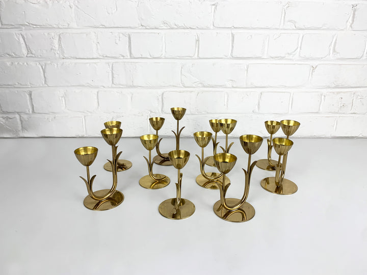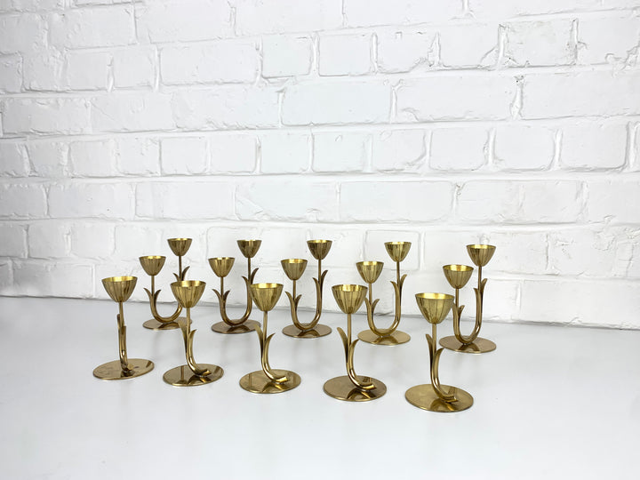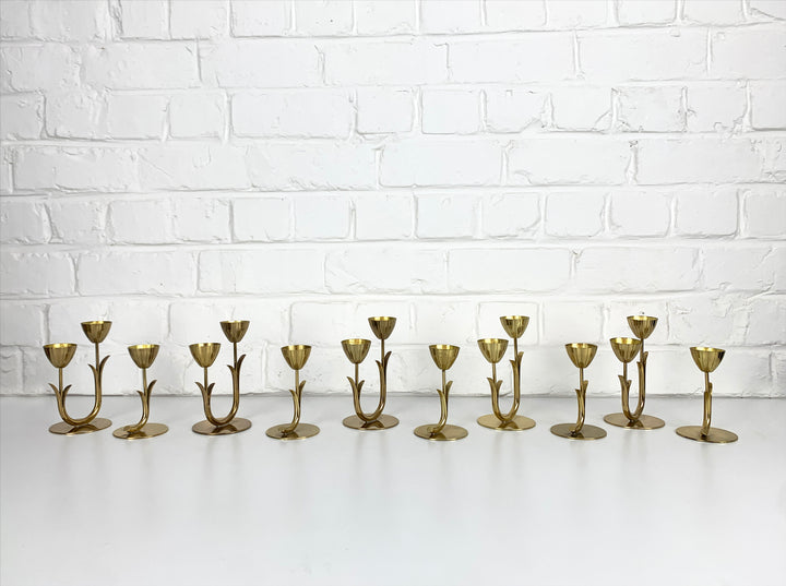 Set of 10 Brass Scandinavian Candlesticks by Gunnar Ander, Ystad Metall Sweden 1950