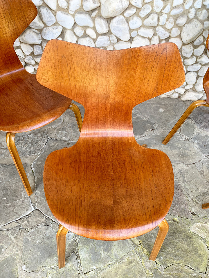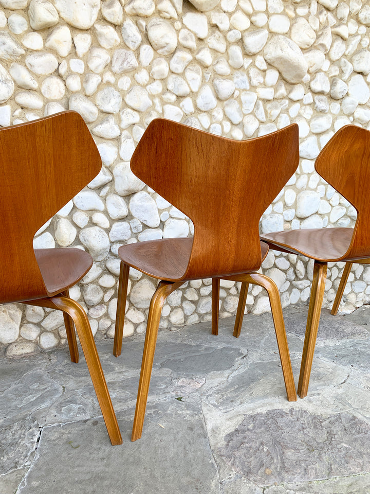 Grand Prix Chairs 4130 Teak by Arne Jacobsen for Fritz Hansen, Denmark, 1960s