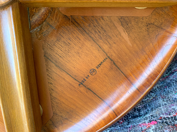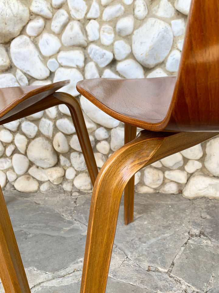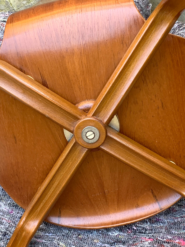 Timeless and rare. Moulded teak plywood, curved legs in stained beech wood. Restored / refinished.