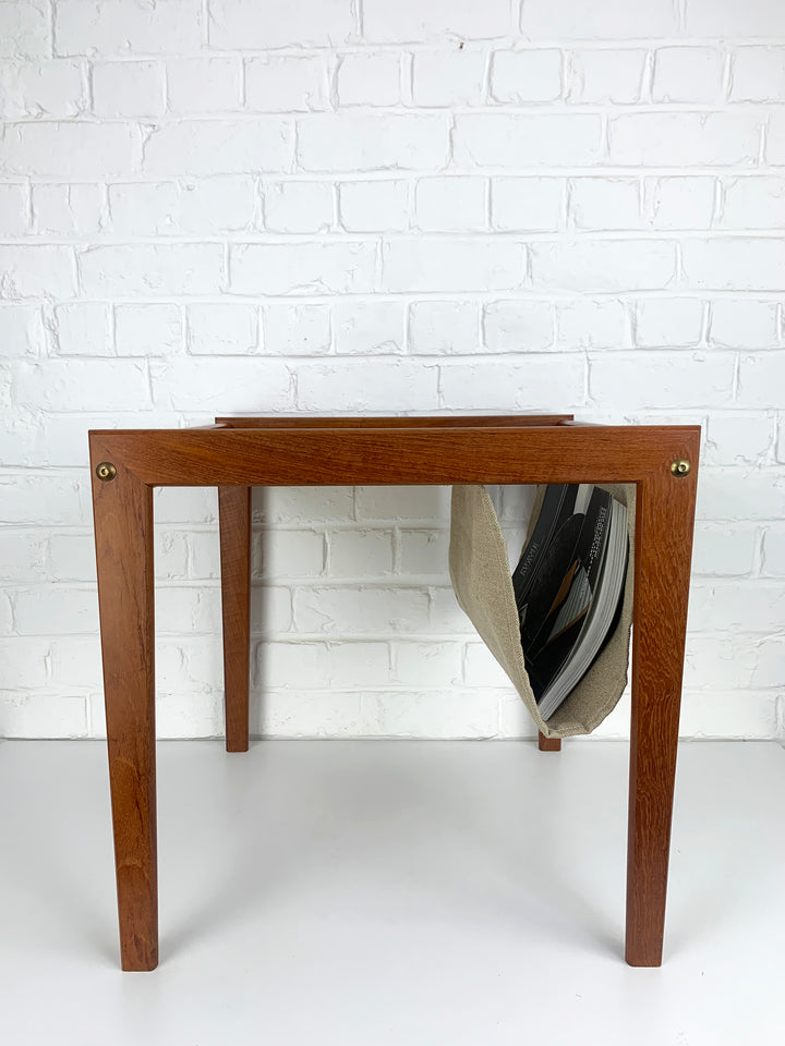 Danish Teak Side Table with Magazine Holder, 1960s Mid-Century