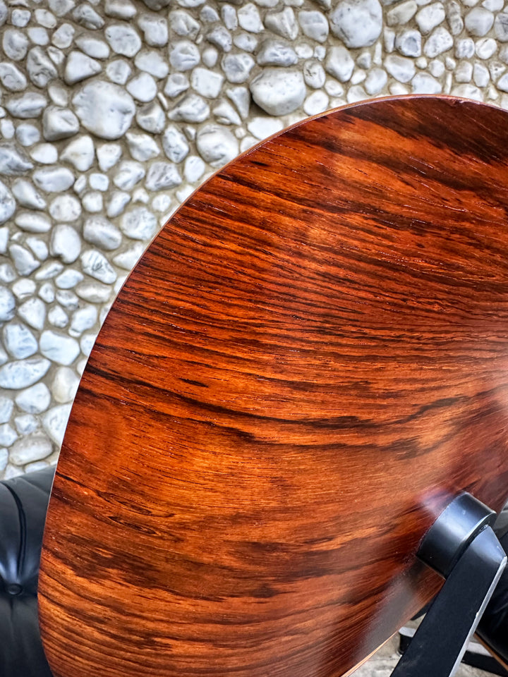 Herman Miller Lounge chair 670 and ottoman 671 in Brazilian Rosewood, design by Ray & Charles Eames. The rosewood panels have been restored, original leather.
