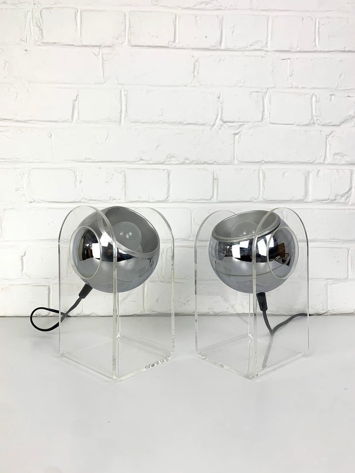 Pair of plexiglass Sphere Space Age Table Lamps, 1960-70s
