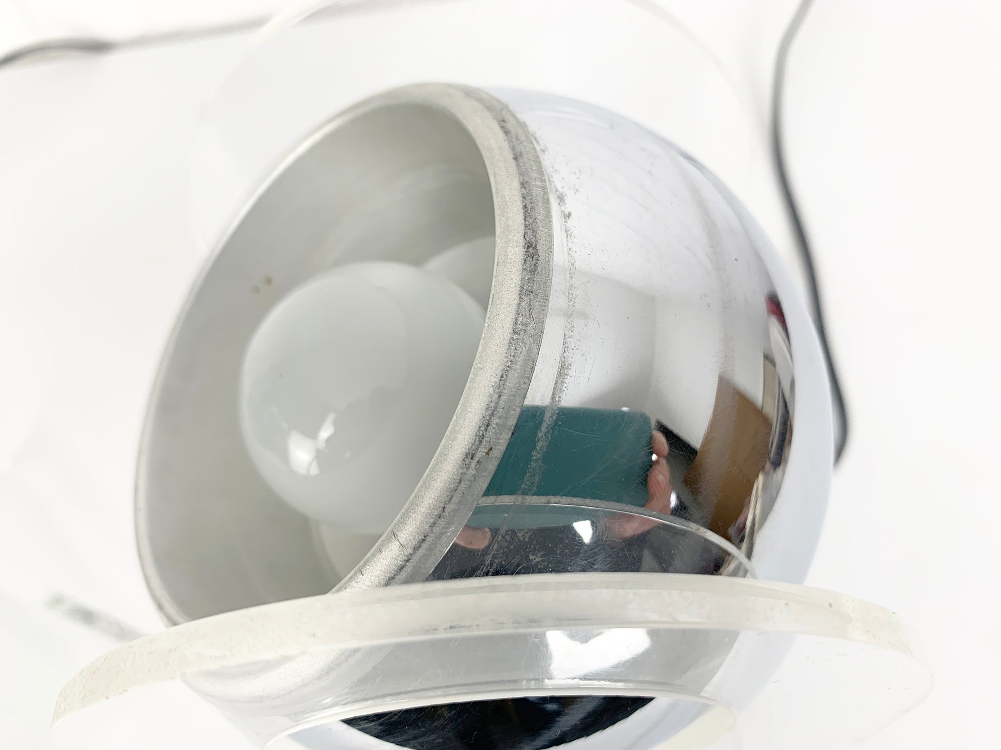 Scratches at some areas of the chrome. One acrylic support has scratches under the base, not visible when the lamp stands on it.