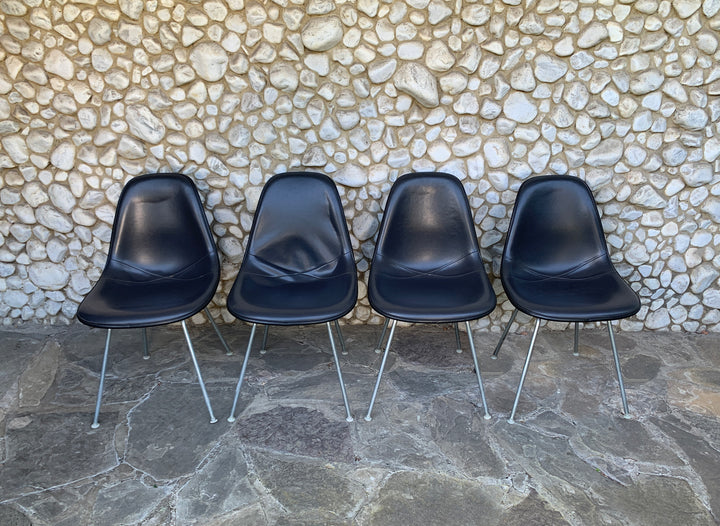 DSX Side chairs by Ray & Charles Eames on dining height bases.